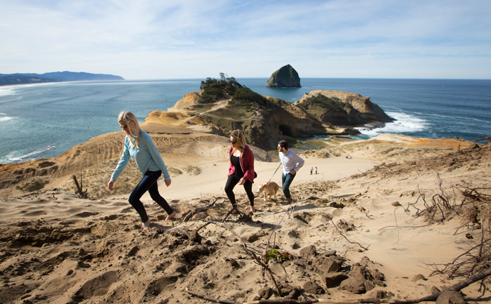 If camping at the Oregon coast isn’t your cup of tea (think dripping tents, damp socks, and soggy s’mores), then “glamping” might be more your jam. With Cape Kiwanda at your doorstep, Hart’s Camp offers eight Airstream trailers with a vintage vibe and modern luxuries, such as warm beds, hot coffee, and the world-class Pelican Pub just a few steps away.