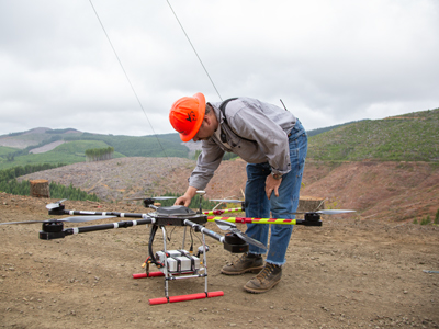 What a difference a drone makes. What used to take a logger two days of stringing lines can now take minutes.